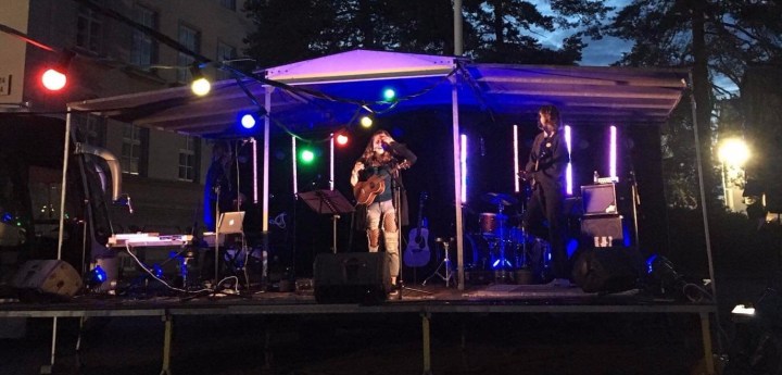 Kovoula had an Art Night happening the last weekend. We wanted to be part of it and were in touch with a few people talking back and forth. After some changing plans, we not only got other bands to perform with us, but also the space granted in a school yard next to the main street and the school’s electricity for our gear!