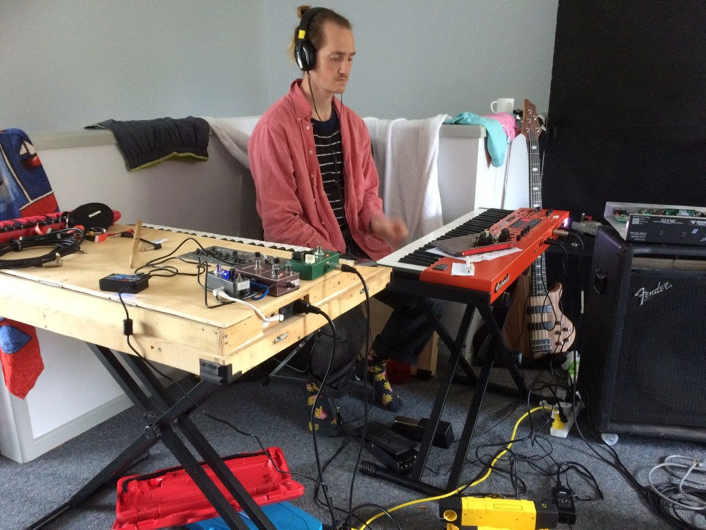 There is a little guest room that Jordan and Eli use as a music room – as long as no guests are staying in it. Jordan has spent time, getting to know his vox and is working on his sound.