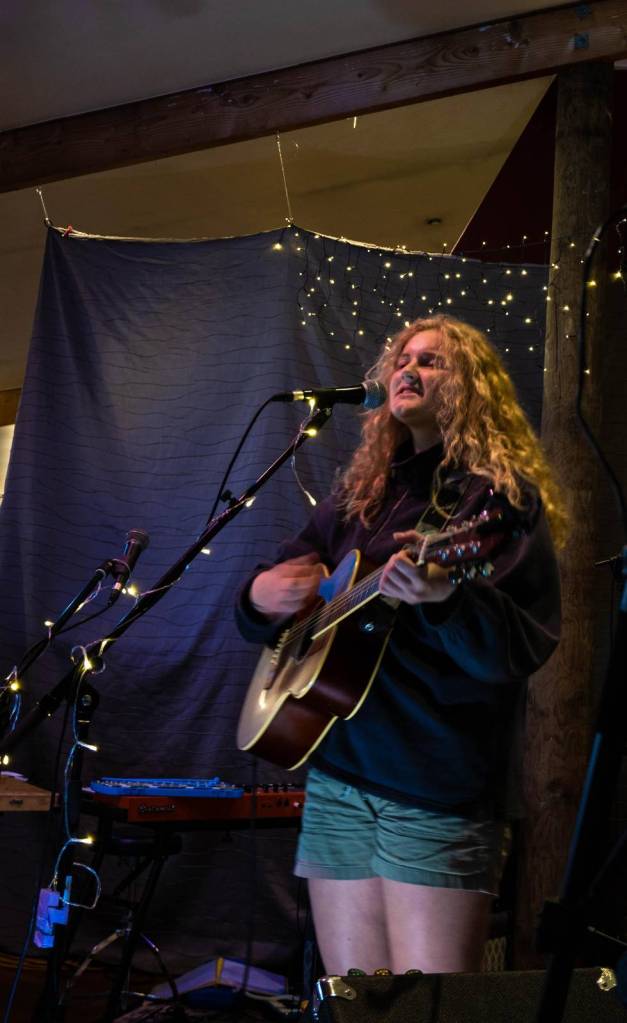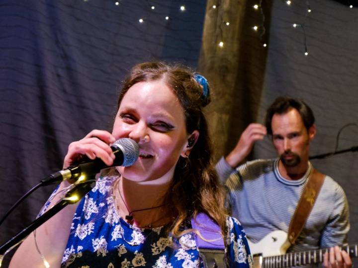 We had two spontaneous solo performances: the night got kickstarted by Mike on the guitar with some covers, followed by Ella on the guitar also doing some covers, but also a sweet original song she wrote not long before. Not to mention Taavi’s incredibly talented and clever stand-up comedy! Samuel + Micaela played a set, while their (awwww sooo cute!) 3 month old got taken care of by friends. They delivered some beautiful harmonies in their amazing originals of melancholy and sweetness. We had planned to do a joined gig with them since before the first Lockdown and are so happy that we managed to finally meet up and perform alongside one another.