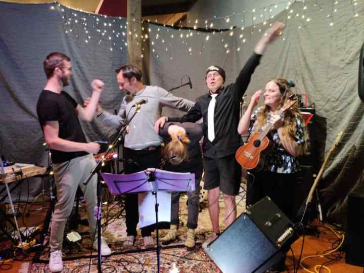 We (ColourCollide) finished off the evening with a longer set, paired with stories about how things started for us as a band, but also some personal stories of hope in the struggle with mental health stuff and such. It was an open and very supportive atmosphere of people moving freely. In the end we had people dancing and partying so much, Eli’s microphone was shaking! One of the coolest crowd engagements in the band’s history! We had the whole thing live-streamed all over the world by our friend Leon, but I think we’d need to apologize the sound quality of it. Nobody knows why (our settings were all by the book!), but it was crap! Sorry! We’ll try to do it better next time!