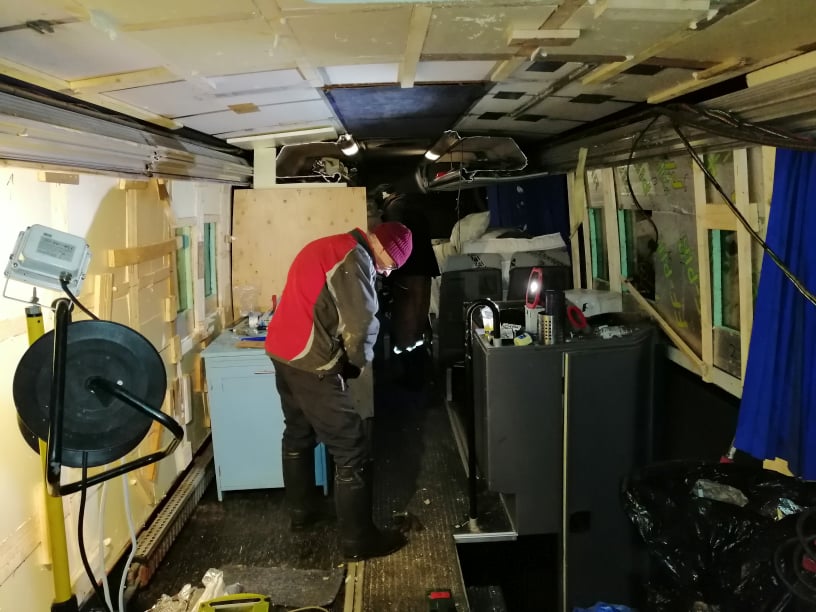 Taavi and Okko got the bus road legal & running! It’s insulation of the living quarters are almost done and they picked up some beds and kitchen gear, which all will be installed and finished closer to (european) spring. They had to wait out a snowstorm, before hitting the road, since it took a 12h drive to make it up here. They arrived two days ago!