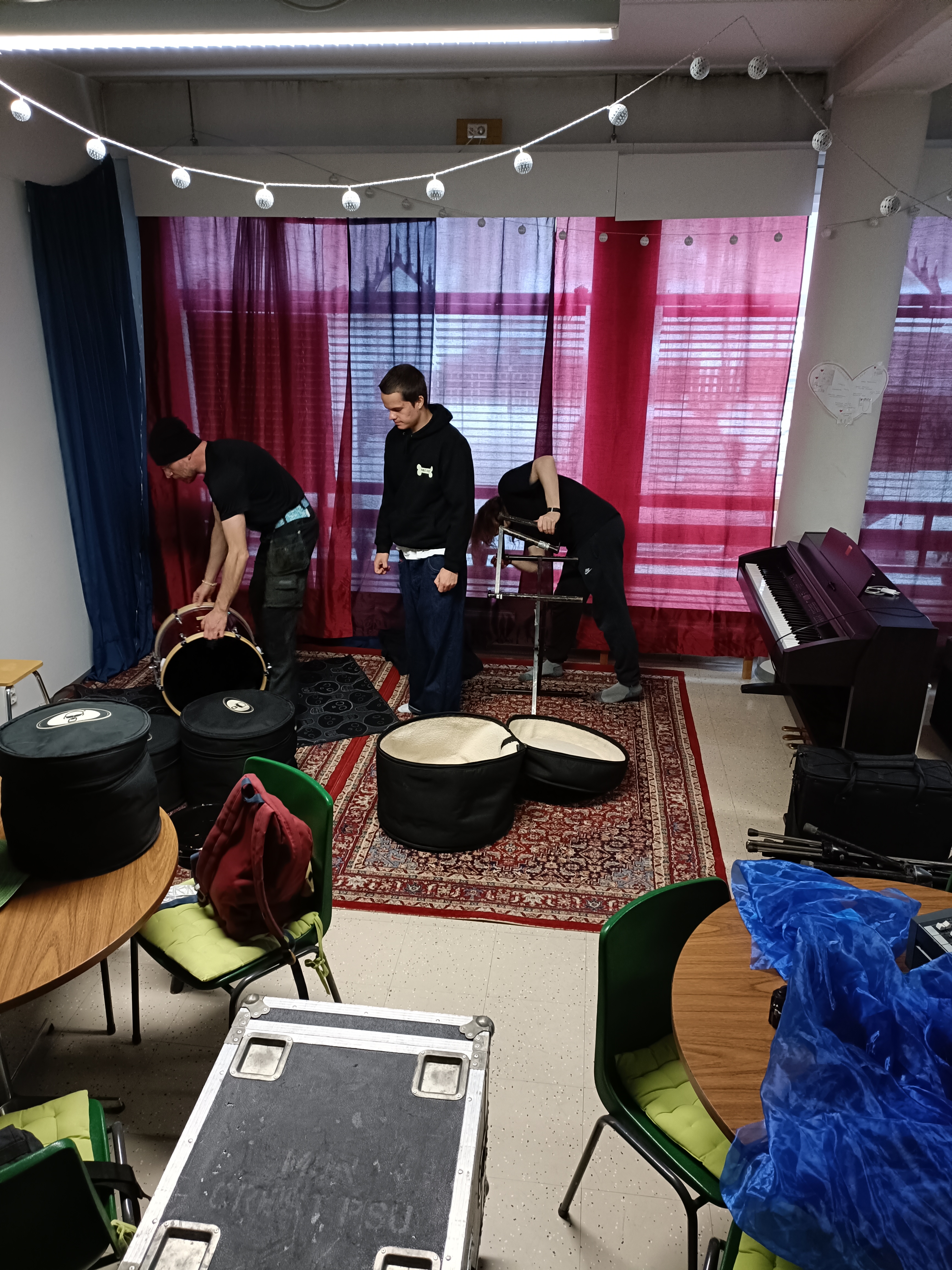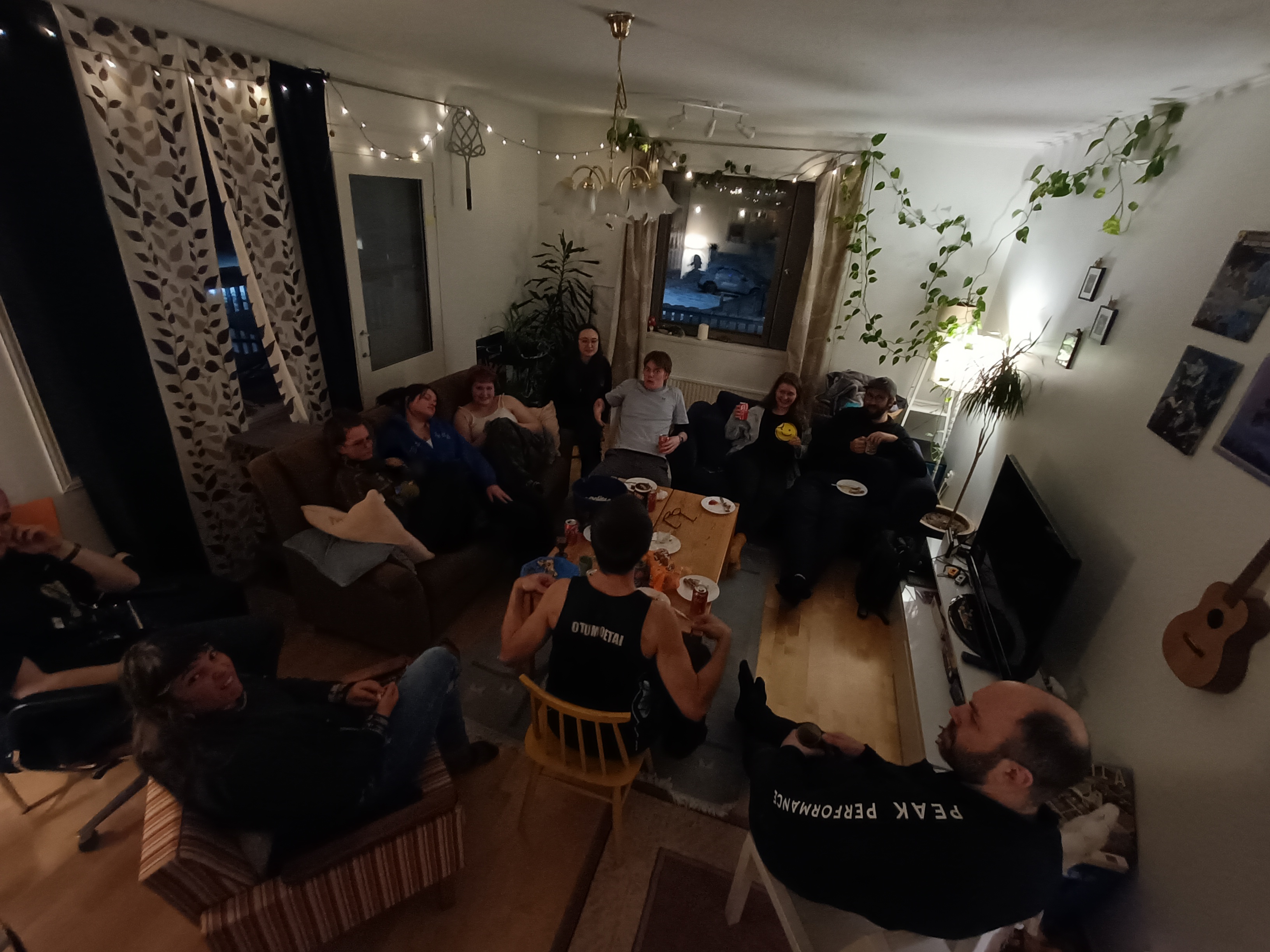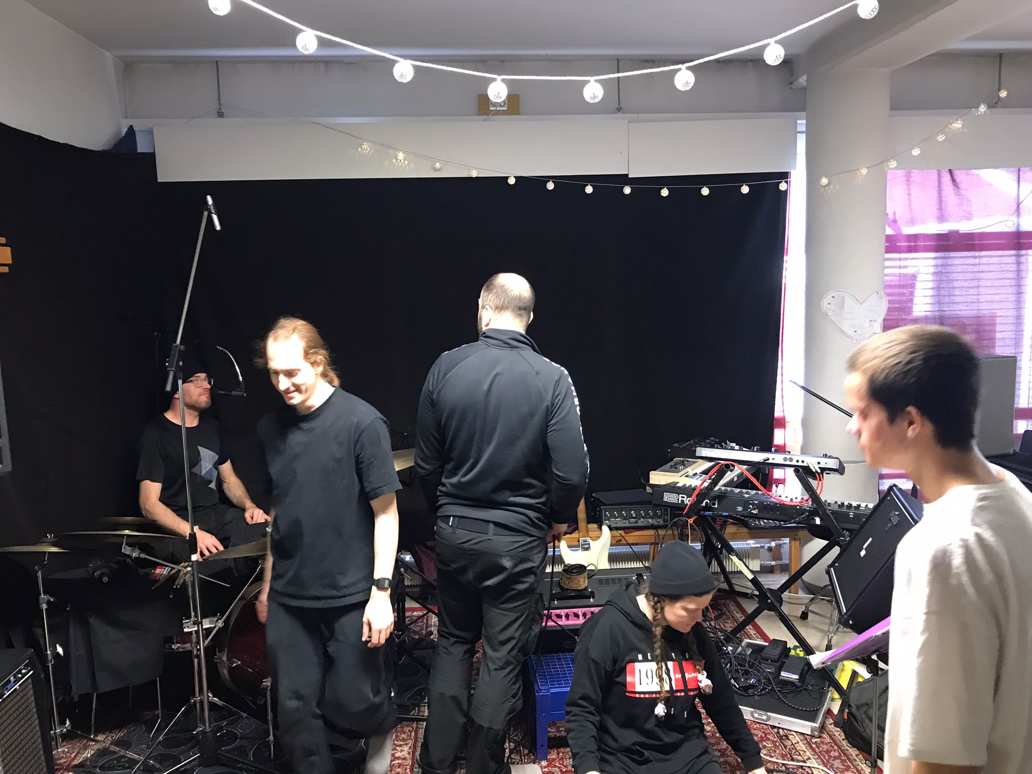 Haydé arrived by train on Friday before the first gig and was staying with us for a whole week. On a Saturday she wrote her verse for our collab song which closed both gigs. Taavi composed his rap-part for this song the night before the first gig and we brought it all together on stage. Saturday evening we skipped the planned outdoor BBQ due to heavy wet snow fall and swapped it for indoor BBQ at our place. Satu had arrived in the afternoon and Taavi brought most of his kids, including Okko’s girlfriend Naja to the hangout and we got to discuss some details for the coming day.