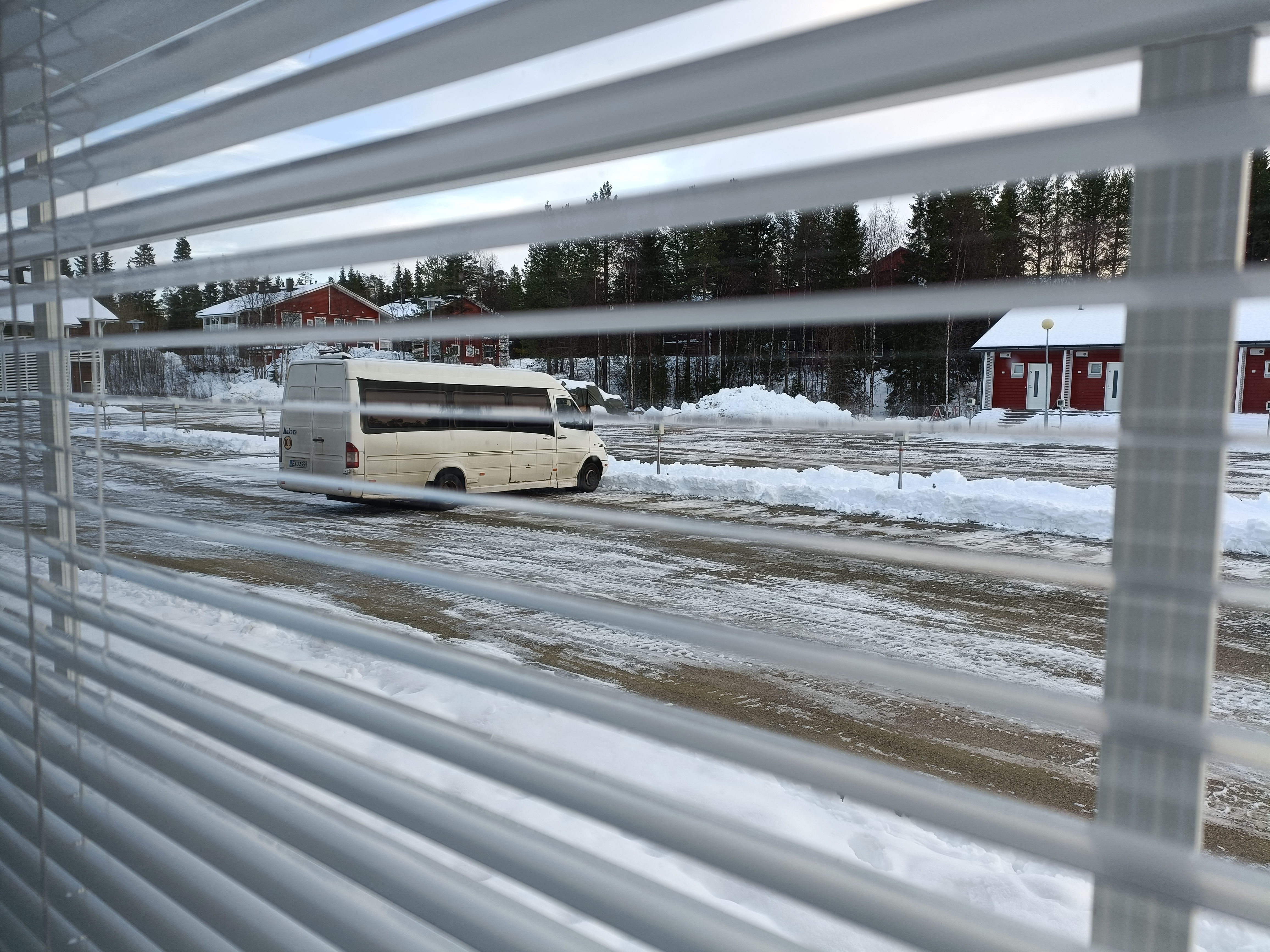 On the next day after some rest we had a bit of a practice session, with a feedback round on the phone with the team. On Tuesday night we loaded the bus with the gear and early next morning we scrambled to get all our personal belongings and tired self’s into the bus, so we could arrive before lunch business at Jolie’s in Äkäslompolo. Yup, that’s the name of the town.