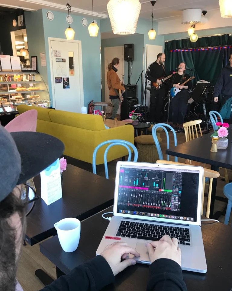 The band met in the morning to pack the “mukava (nice)” bus with all the gear we needed. Satu, Haydé and I arrived early to meet Sanna, the pastor of the free church we performed at. Someone had broken the outer layer of their window next to the entrance, so the police had to be called and the city officials came to clear all the broken glass swiftly. Finnish windows have multiple layers so no cold was able to come inside. We had a chat with pastor Sanna about the layout and our stories/songs. Then the guys arrived with all the gear and we did the setup with the help of Oula, the trusted drum tech. Eero, again, filled the double role of a sound guy and bass player. He always does a great job and even lets us use his own gear.