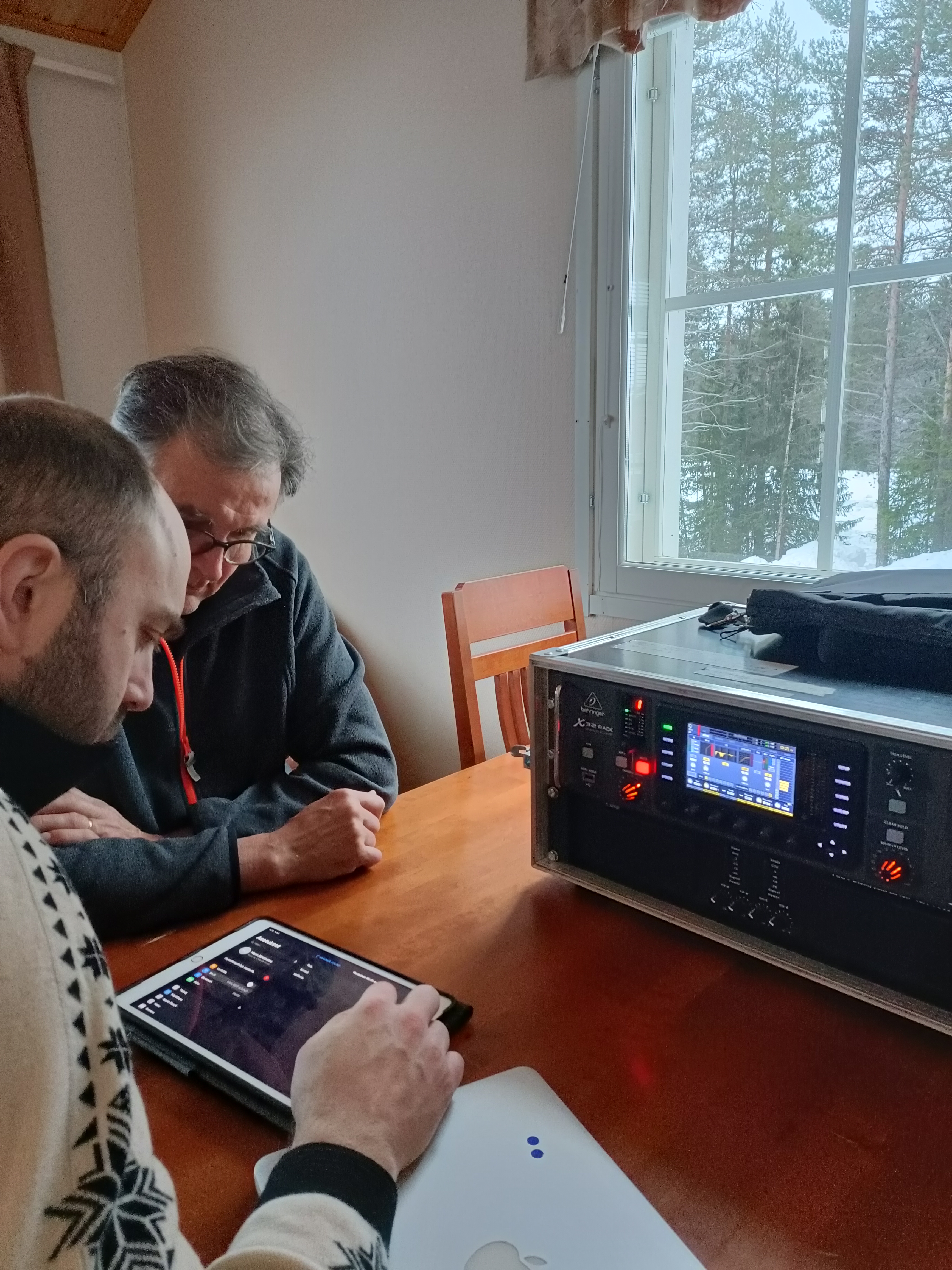 With a quick change of plans, we went to the hotel first to check in and settle down. This gave Hartsa and Juhani plenty of time to look at the sound desk and to suss out some technical stuff. Meanwhile Taavi caught up with his old friend and organised Juhani an acoustic guitar for that one song.
