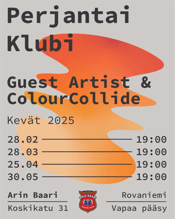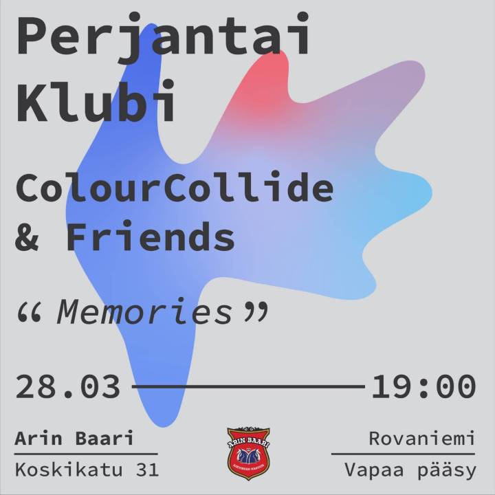 With the next one fast approaching, we would love for you to mark the date in your calendars! On 28.03. we will run our Next Perjantaiklubi under the title of “Memories”. ColourCollide will do two sets with special guest singers joining throughout the set.