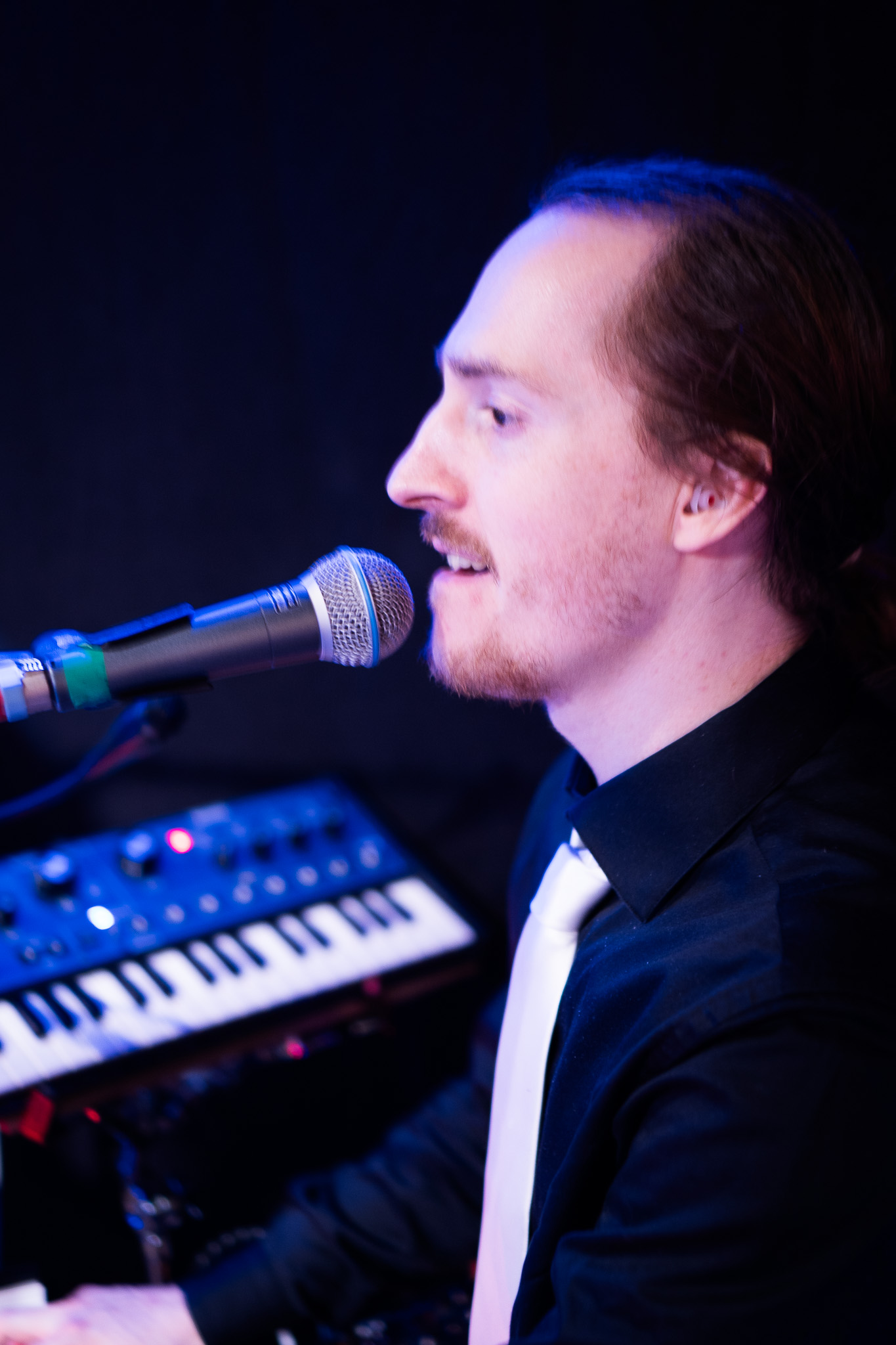 Although Ari extended the stage in width, there was less space for us to set up, since he also acquired an upright Piano for their singalong nights. We love our cozy, close standing set ups in general. This time we got to huddle even closer together – but somehow still managed to not trip over each other.